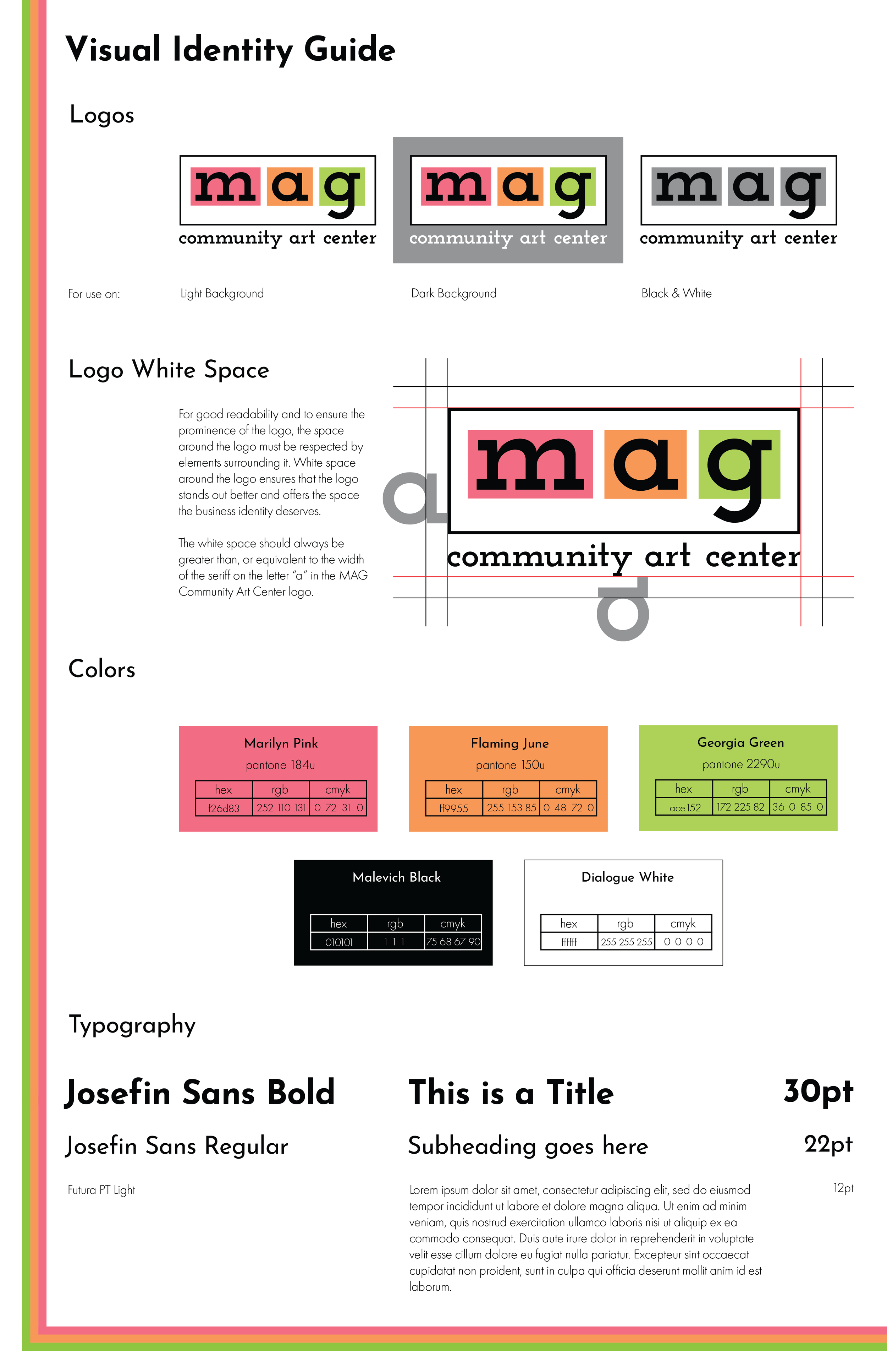 Client project: Branding and interior signage for the new MAG Community Art Center and assets for their grand opening event.